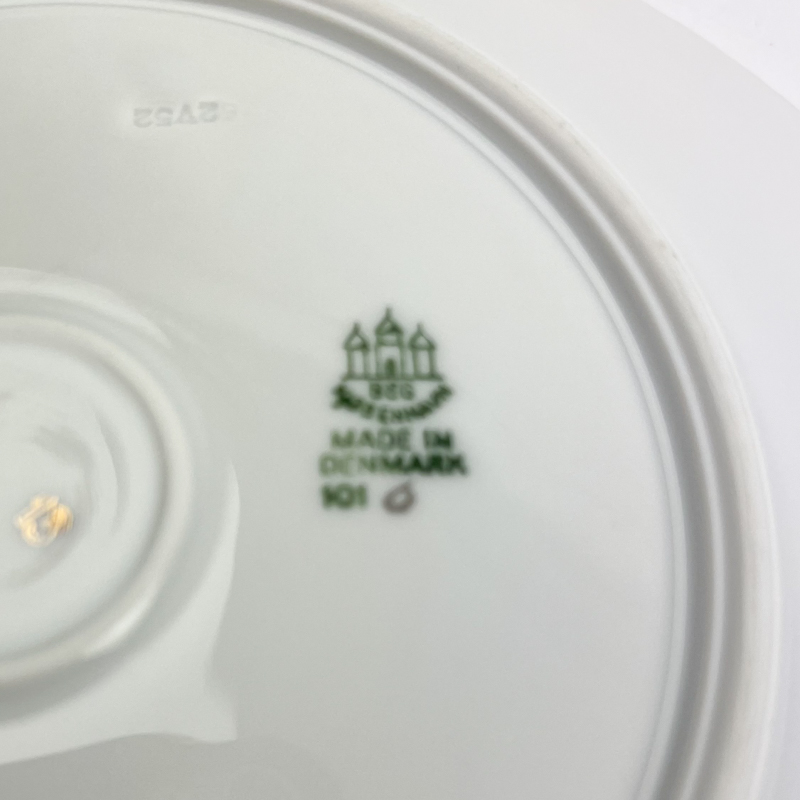 Produceret hos Bing & Grøndahl i Danmark med det fine reliefmønster, guldkant og elegante gennembrudte hanke.