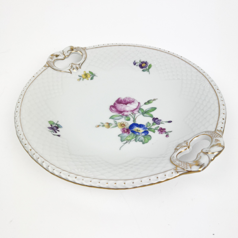 Smukt vintage fad i porcelæn med klassisk Saksisk Blomst dekoration.