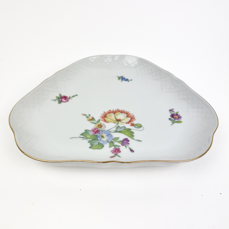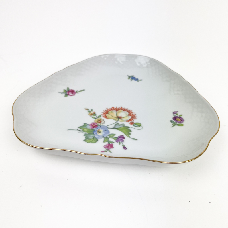 Smukt vintage fad i porcelæn med klassisk Saksisk Blomst dekoration.