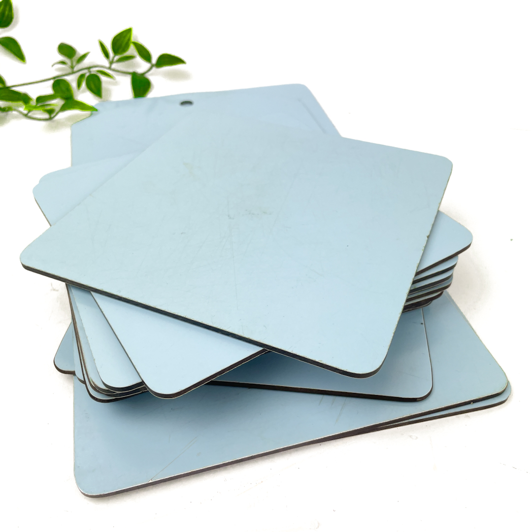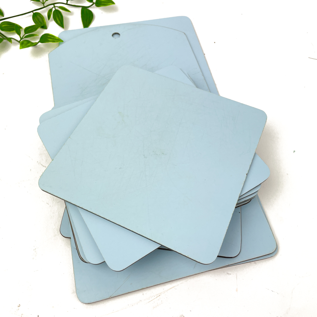 Ti smørebrikker og to skærebrædter i ensartet lyseblå nuance.
