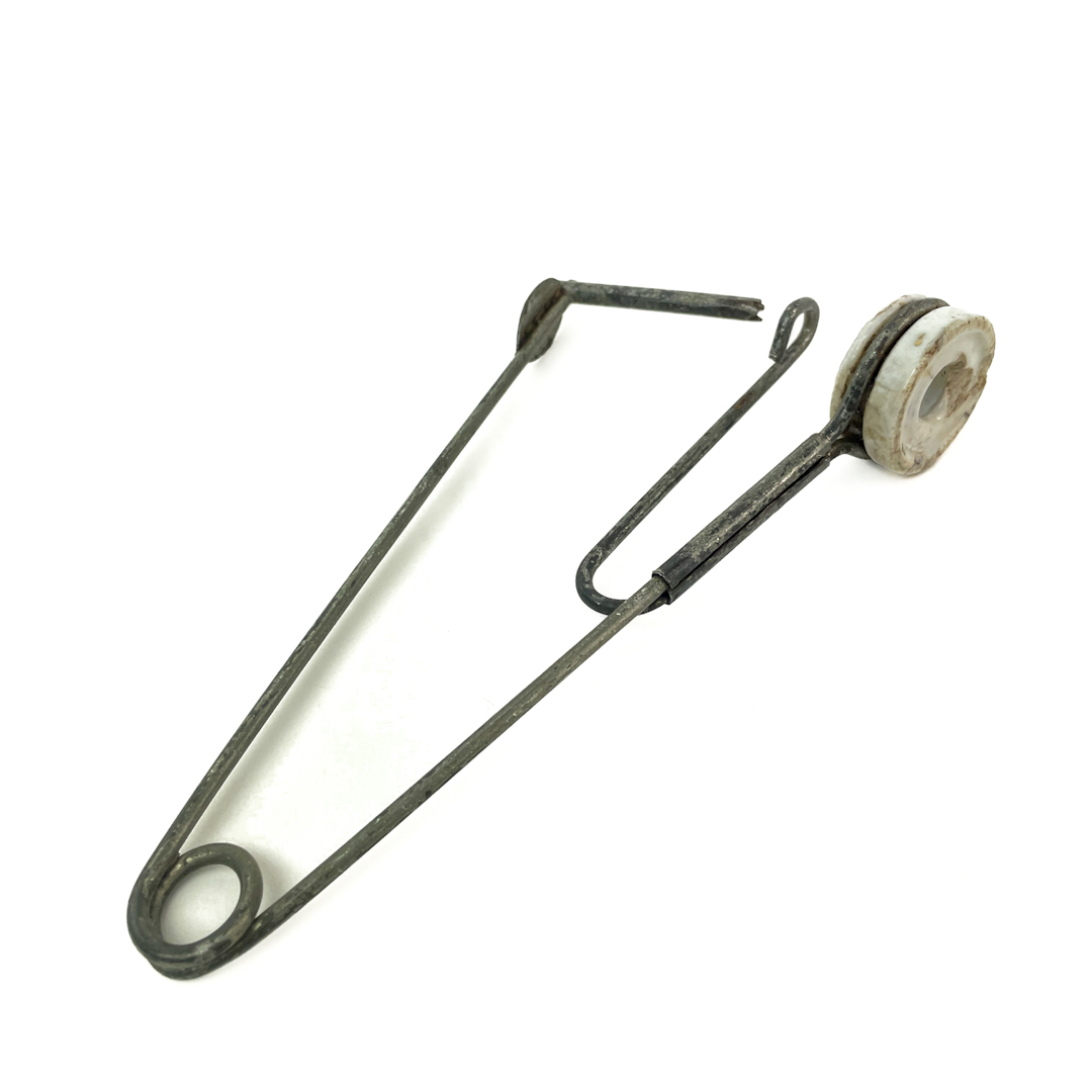 Original vintage kirsebærudstener i mørk metaltråd med lille hvidt porcelænshjul.