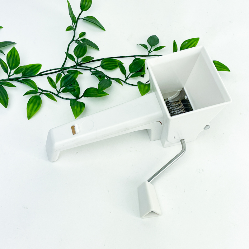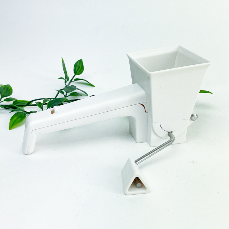 En charmerende vintage persillehakker i hvid plast og metal. Den har de klassiske roterende knive og et fast håndtag, der gør den nem at arbejde med. Hakkeren fremstår i flot stand og fungerer perfekt.