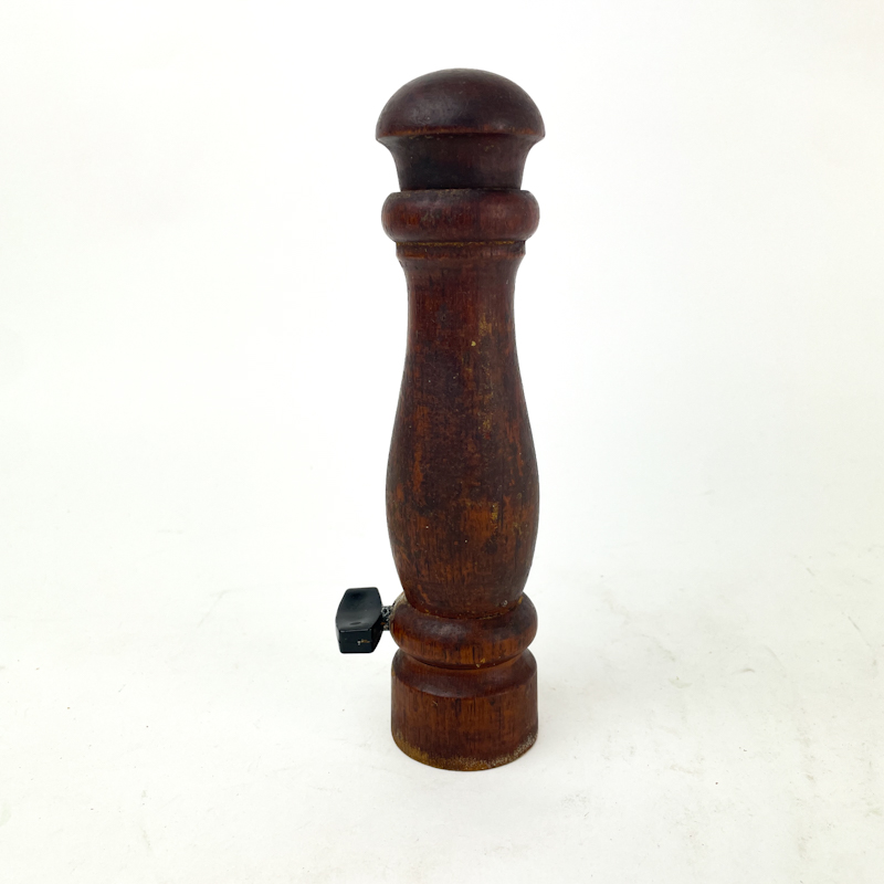 Original vintage peberkværn udført i massivt træ med klassisk drejet form.