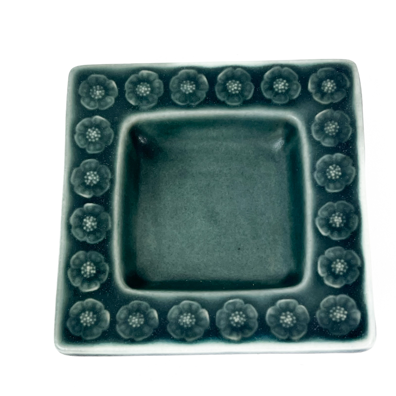 Den kvadratiske form og den lille fod giver skålen et elegant og klassisk udtryk fra midten af det 20. århundrede.