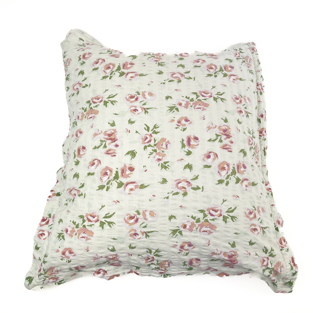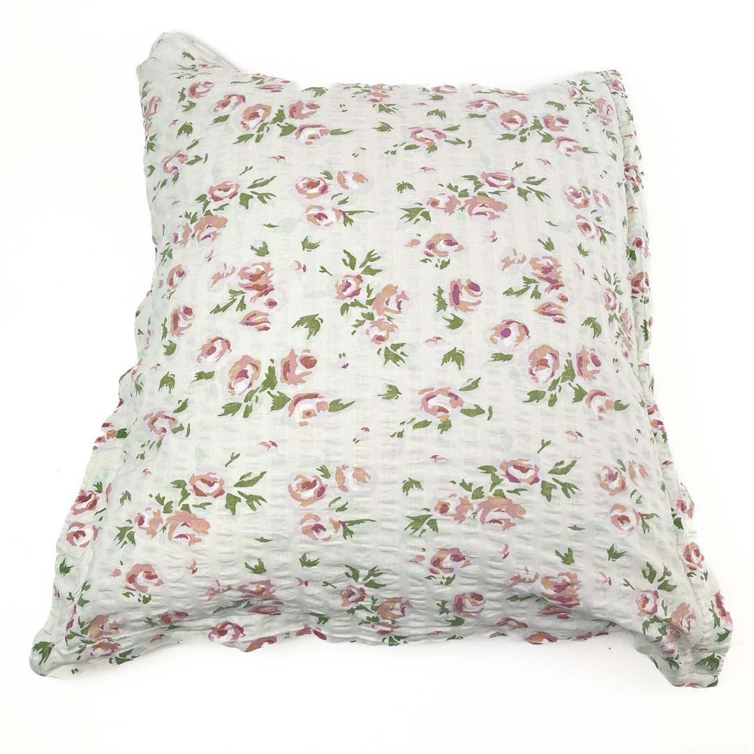 Betrækket er dekoreret med et romantisk mønster af rosa roser med grønne blade på lys bund.