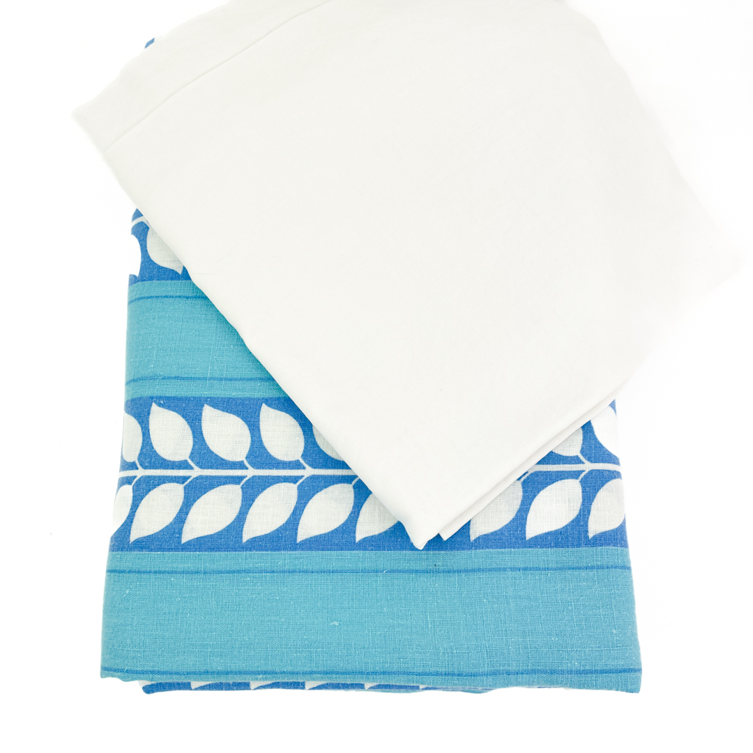 Smukt sengesæt i kraftig bomuld med frisk bladmønster i blå og hvide nuancer.