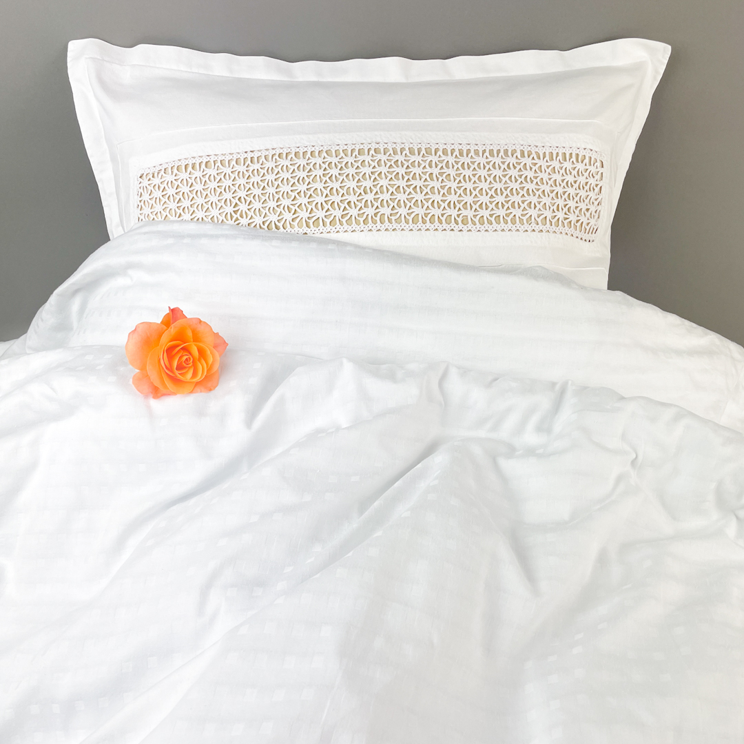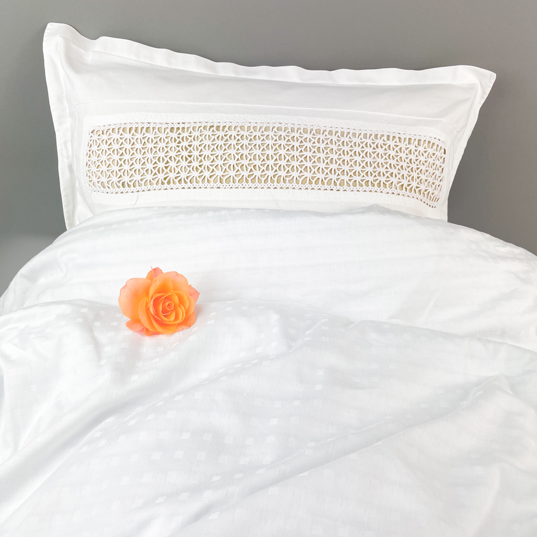 Hvidt vintage sengetøj med mellemværk