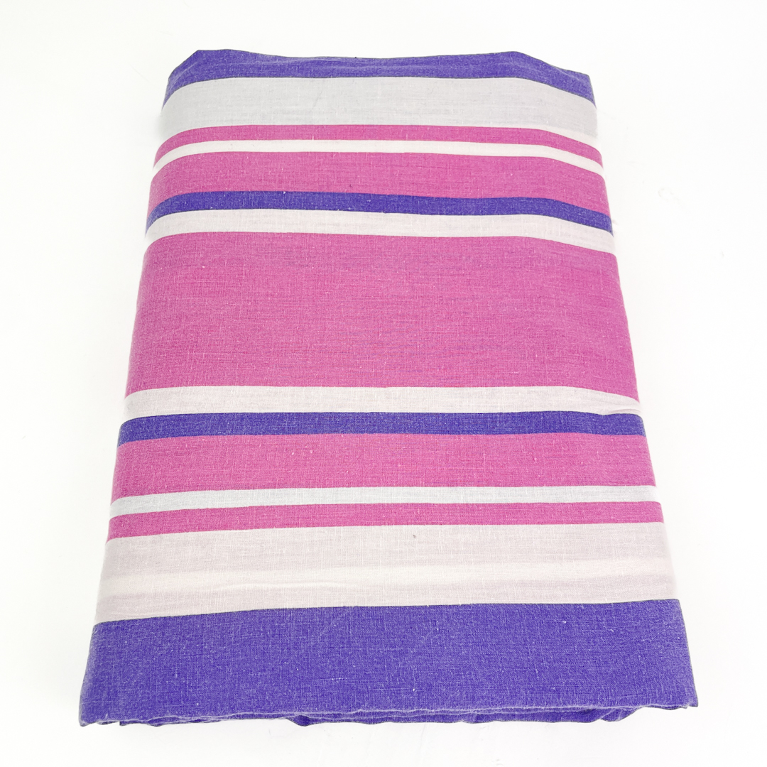 Friskt retro sengetøj i lilla, pink og hvide striber i klassisk 70’er-stil.