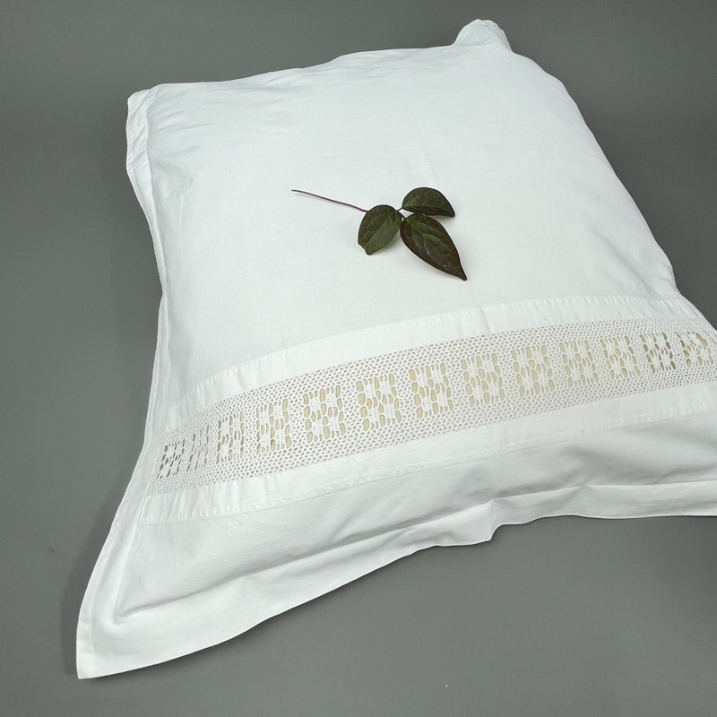 Smukt hvidt pudebetræk i ren bomuld med mellemværk