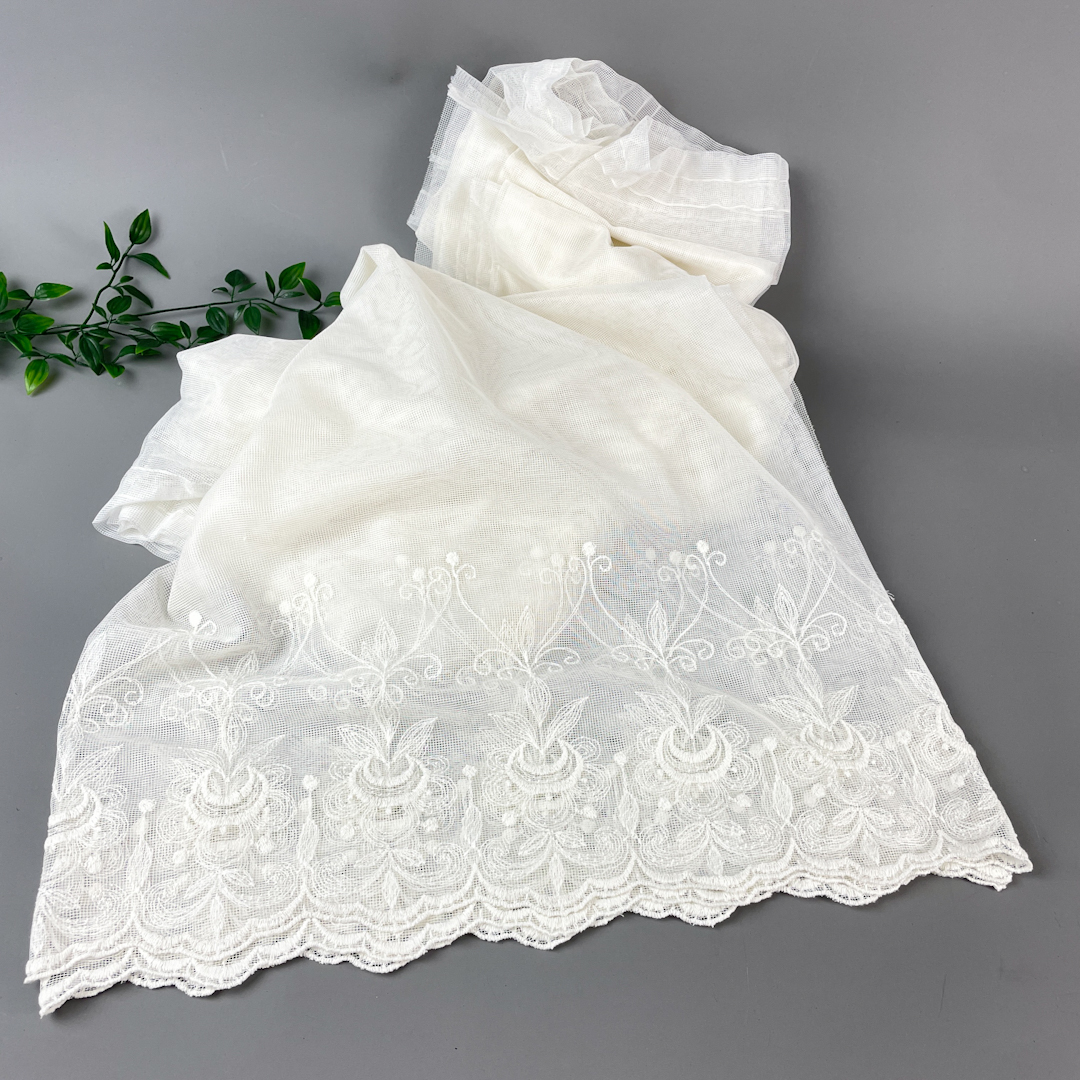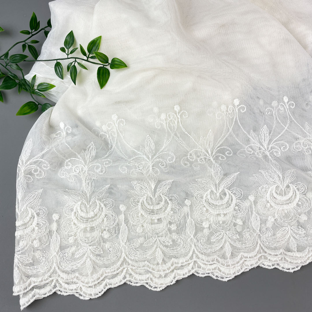 Smukt vintage undergardin i hvidt netstof.