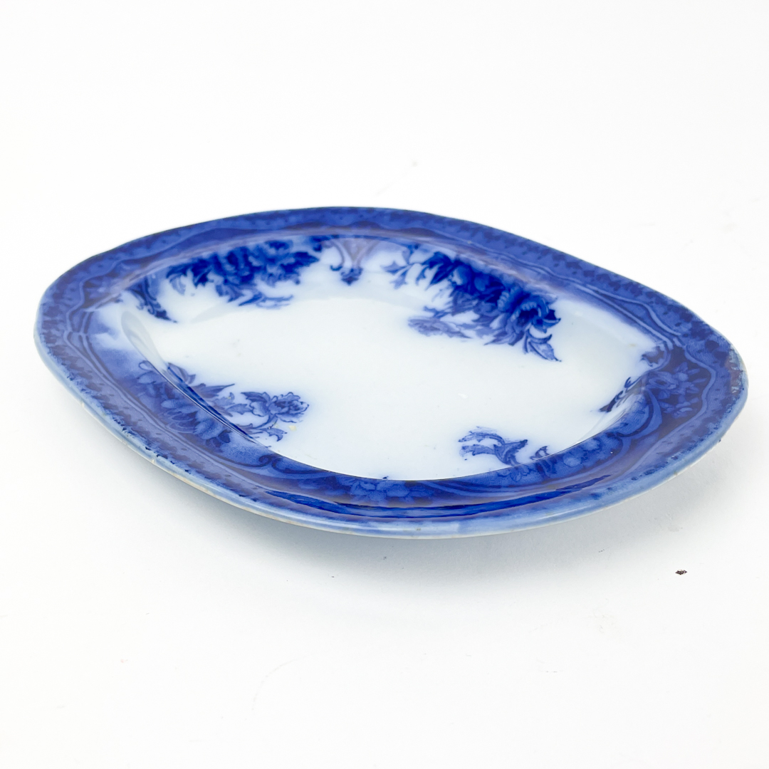 Smuk oval sæbeskål i hvidt og koboltblåt porcelæn fra Edgewood & Co, England.