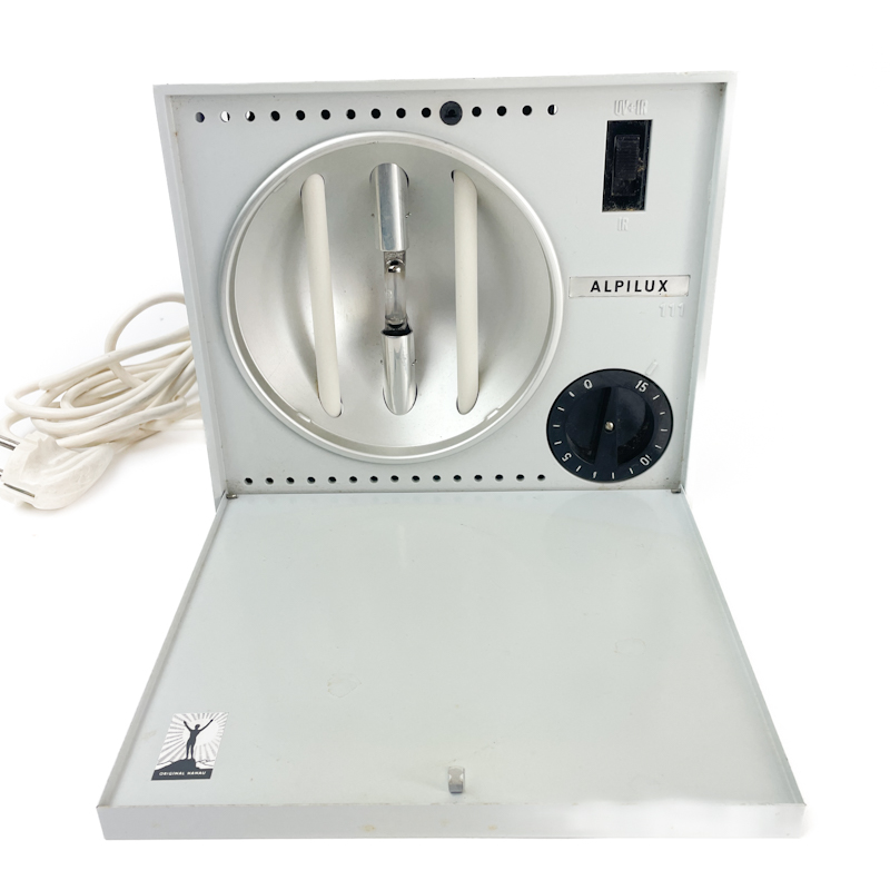 Højfjeldssolen virker, og indvendigt ses den karakteristiske reflektor og UV-pære, som er typisk for modellen.