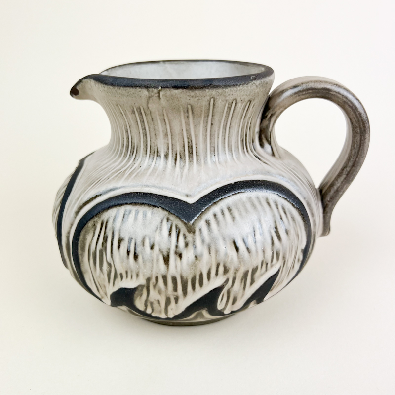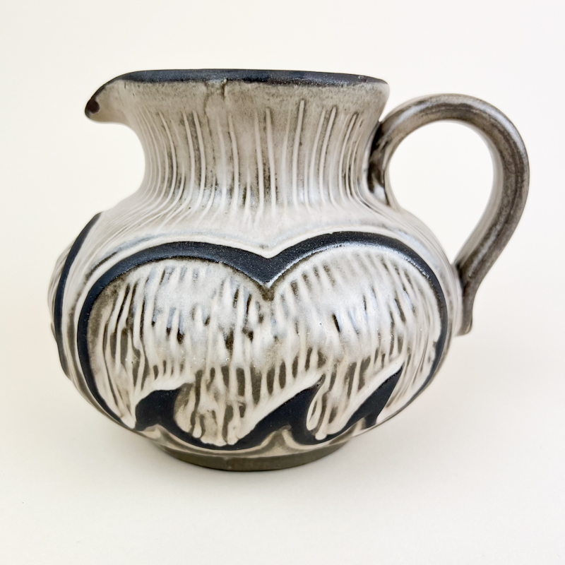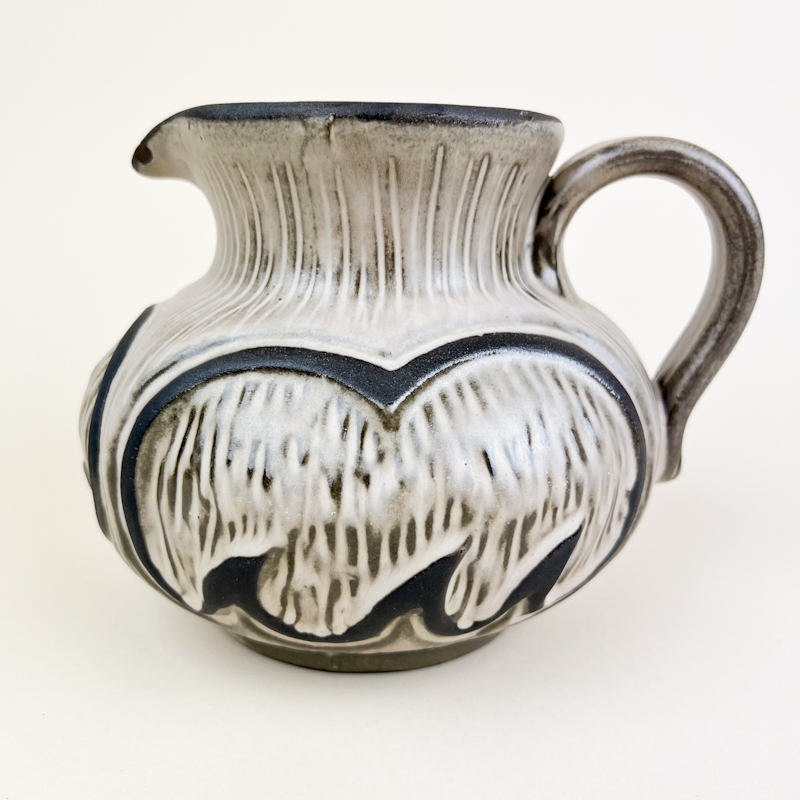 Flot vintage keramikkande fra Løvemose med grå og mørke nuancer i glasuren.