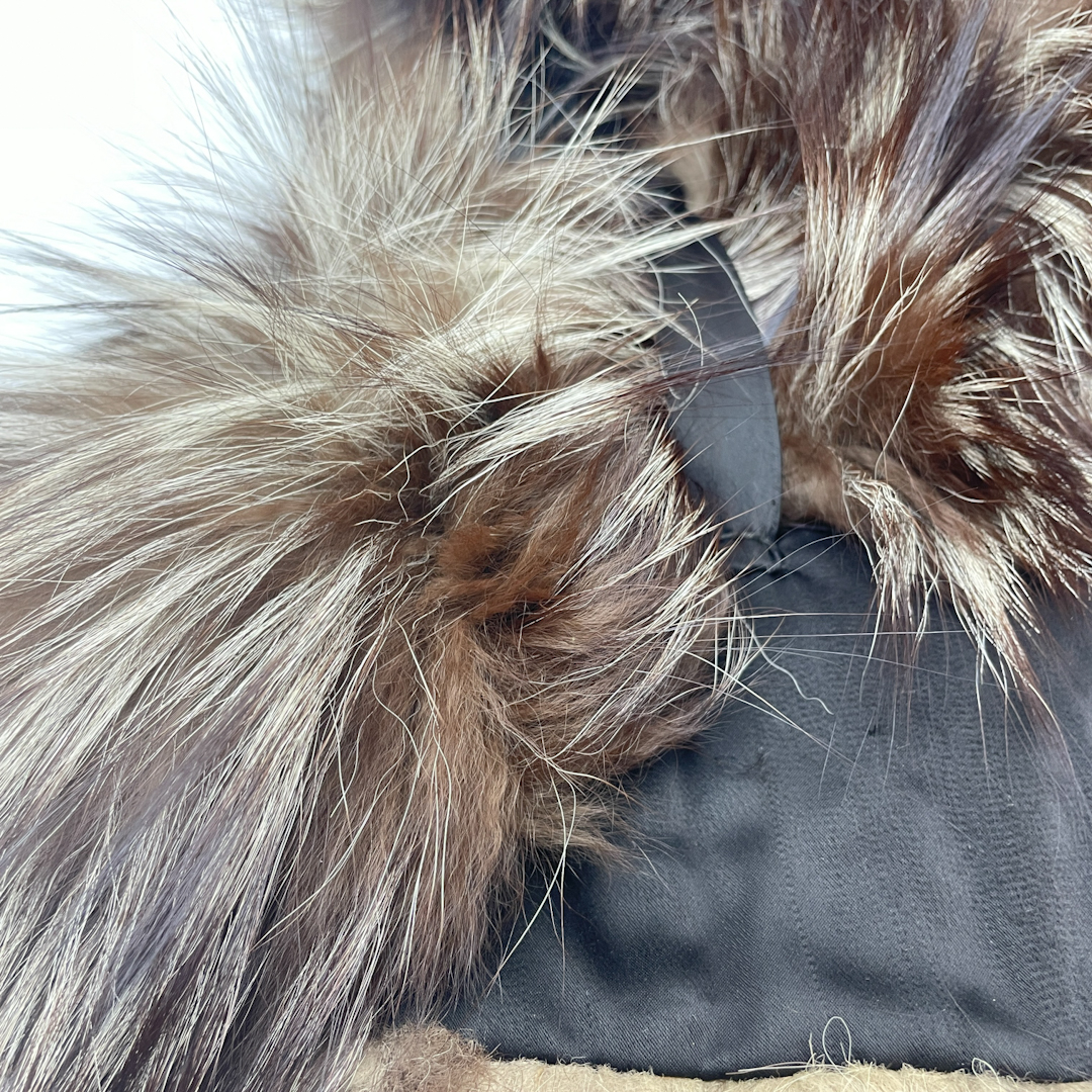 Pelsen er tæt og glansfuld med flot fylde, og kraven ligger smukt over skuldrene og brystet.