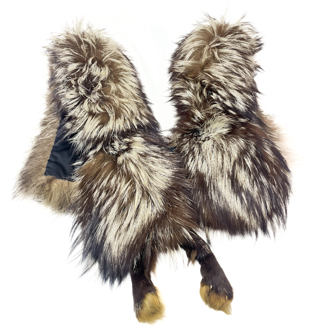 Stor og imponerende vintage rævepelskrave i naturlige brune og sølvfarvede nuancer.
