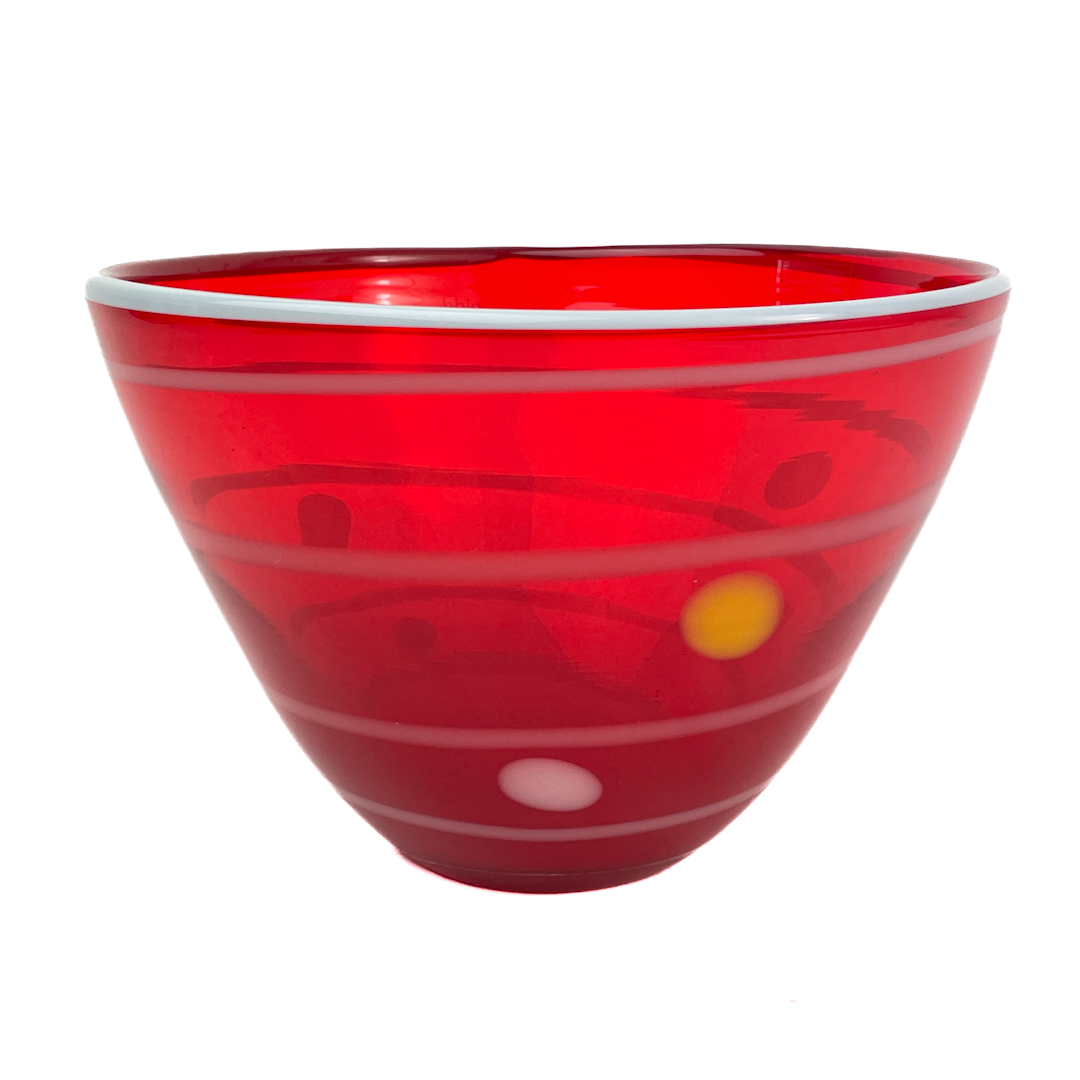 Fantastisk mundblæst rød glasskål fra Gabbiano, Italien.