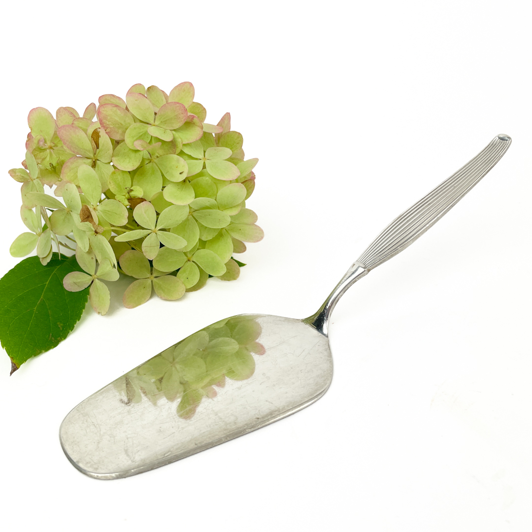 Håndtaget er enkelt dekoreret med fine striber, og bladet har en klassisk form.