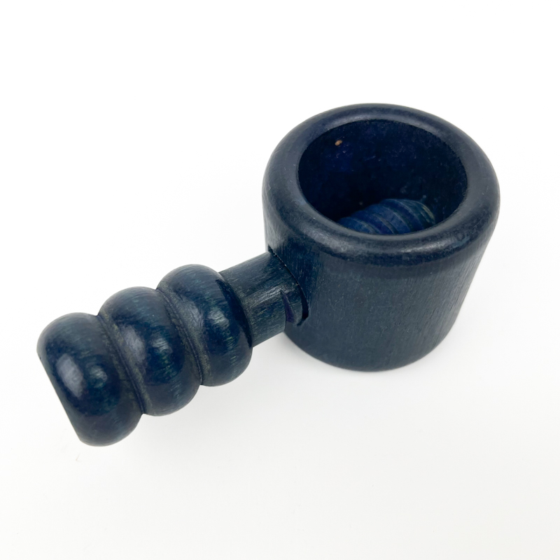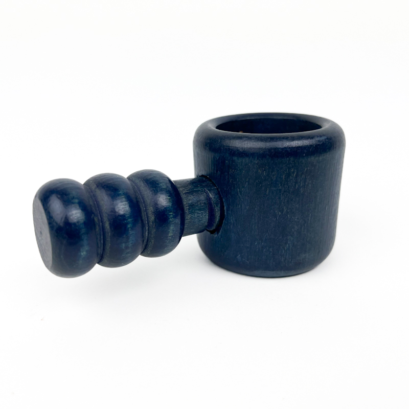 Fin retro nøddeknækker i træ med smuk blå bejdset overflade.