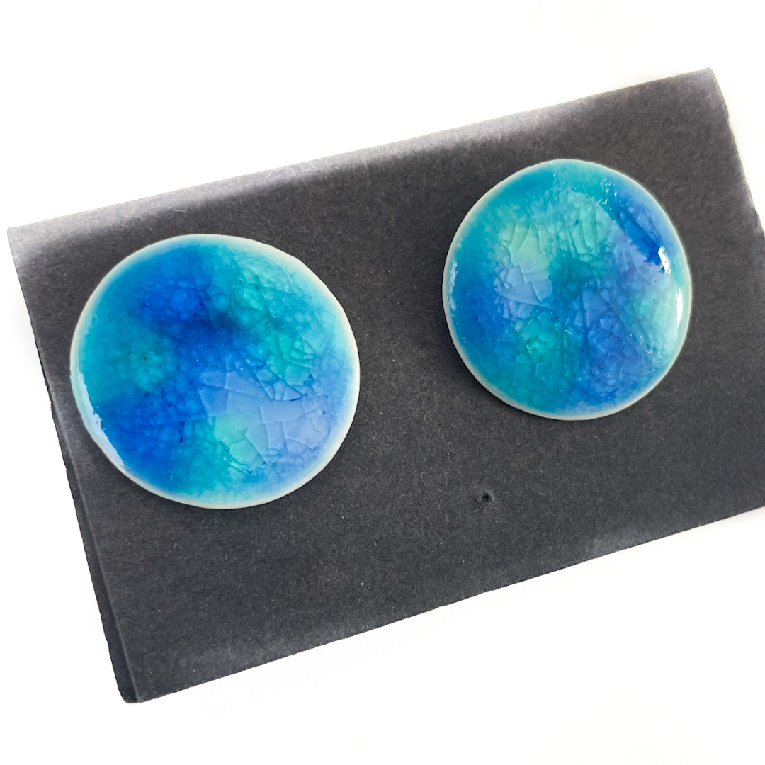 Smukke runde vintage ørestikker i glasagtig emalje.