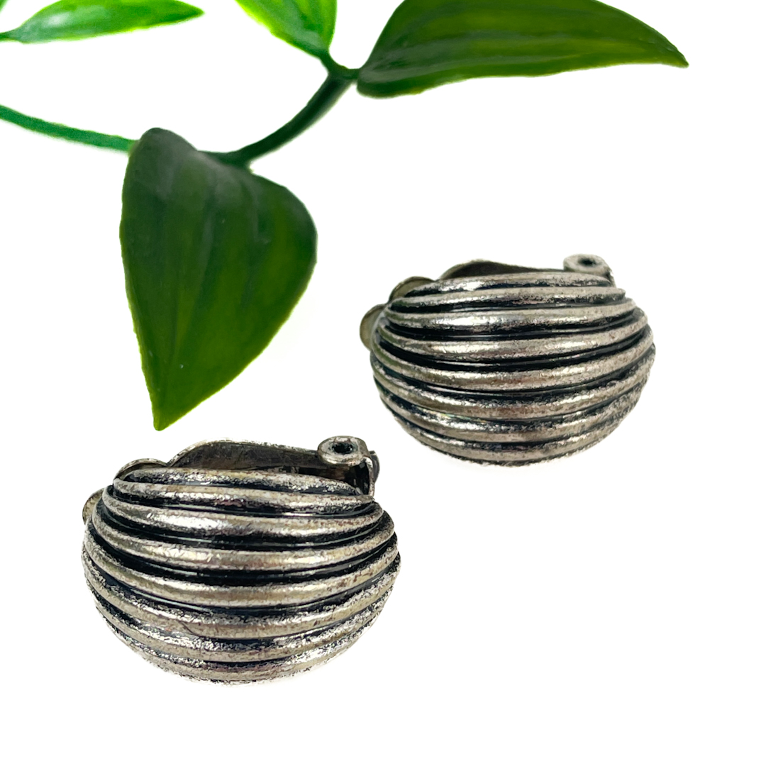 Smukke vintage øreclips i sølvfarvet metal med elegant rillet mønster.