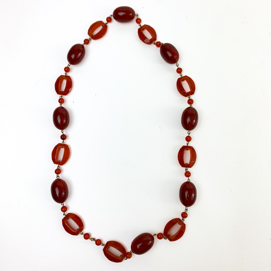 Smuk vintage kæde med store facetslebne og ovale perler i ravfarvede nuancer.