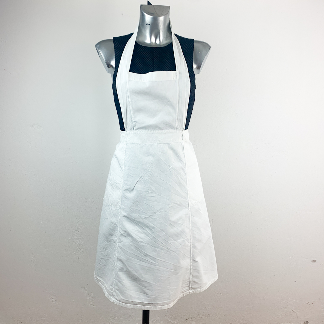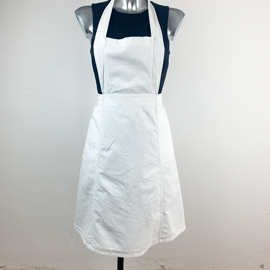 Smukt hvidt vintage sygeplejeforklæde i bomuld.