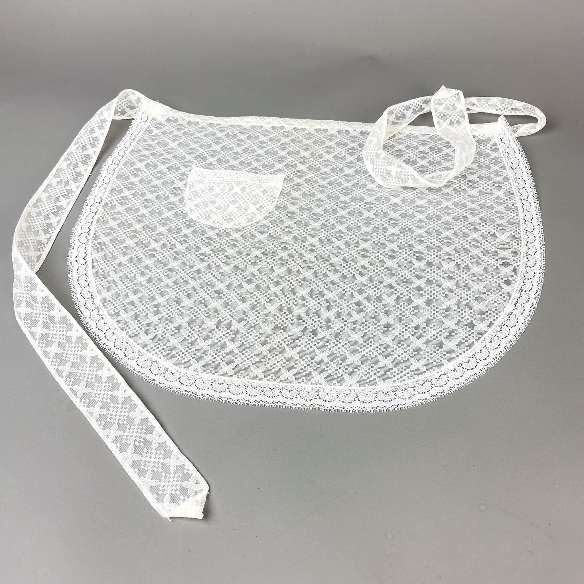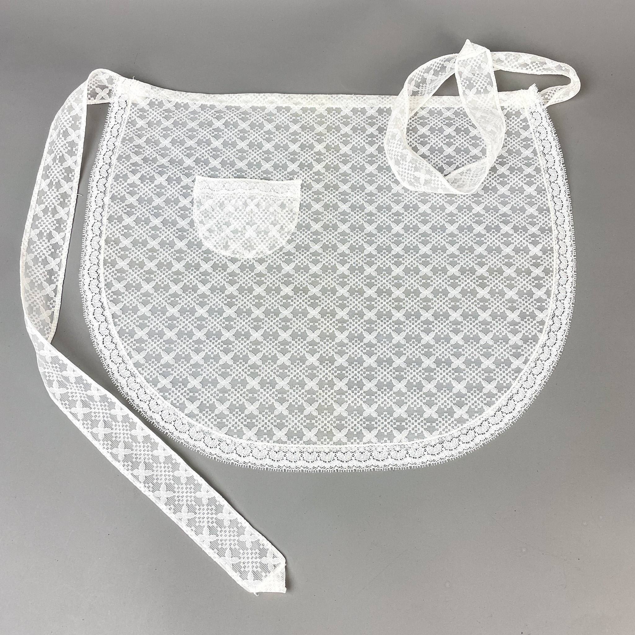 Smukt gammelt forklæde i fin hvid blonde med lille lomme foran.