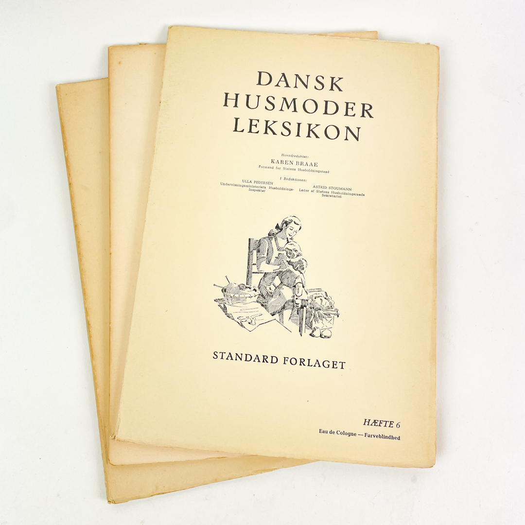 Tre hæfter af Dansk Husmoder Leksikon, udgivet af Standard Forlaget.