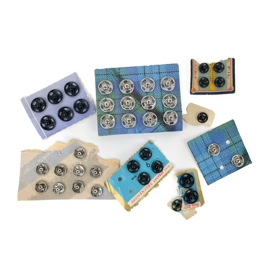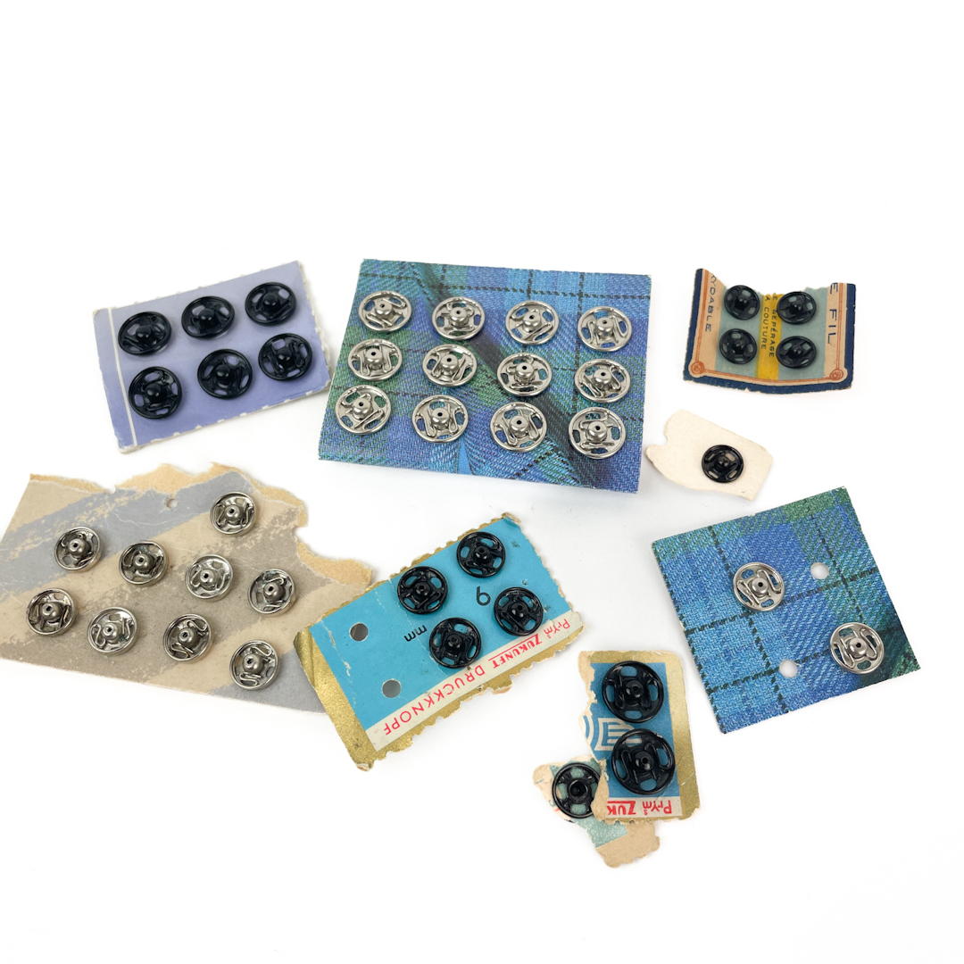 Smukke originale vintage trykknapper i metal på deres oprindelige kort.