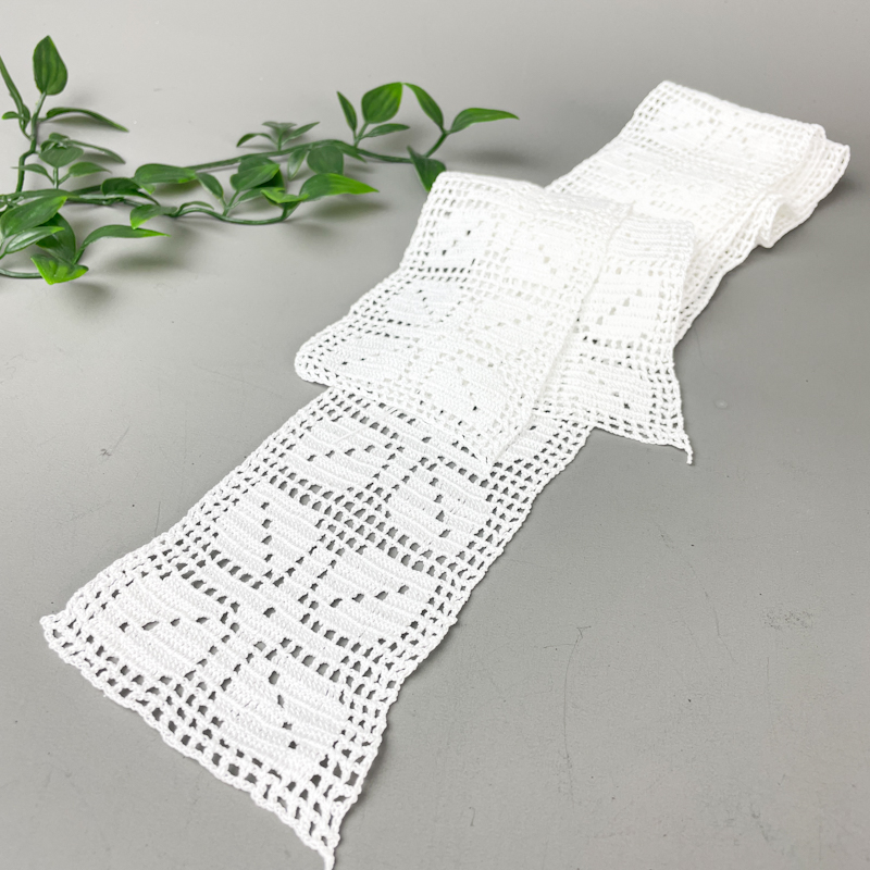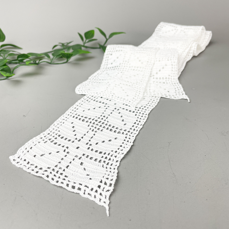 Sæt med to vintage hæklede mellemværk i hvid med klassisk, gennemgående mønster.