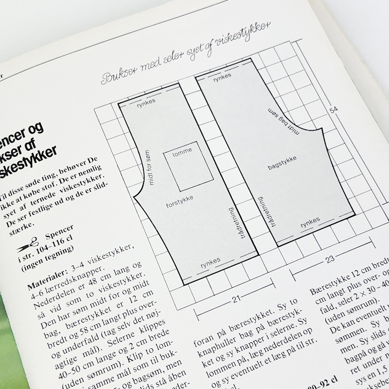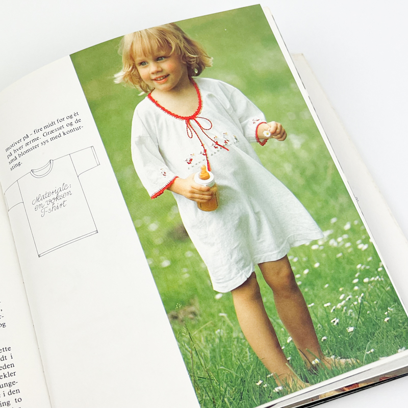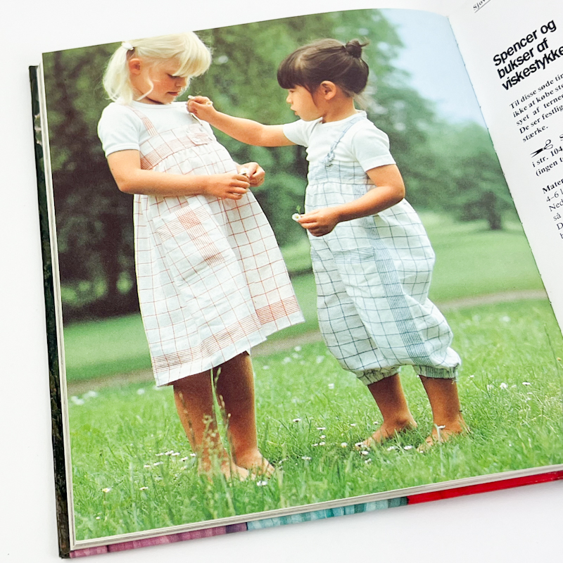 Bogen er fra starten af 1980’erne og indeholder mange modeller til syning, strik og håndarbejde til børn.