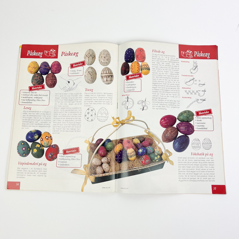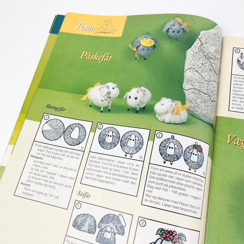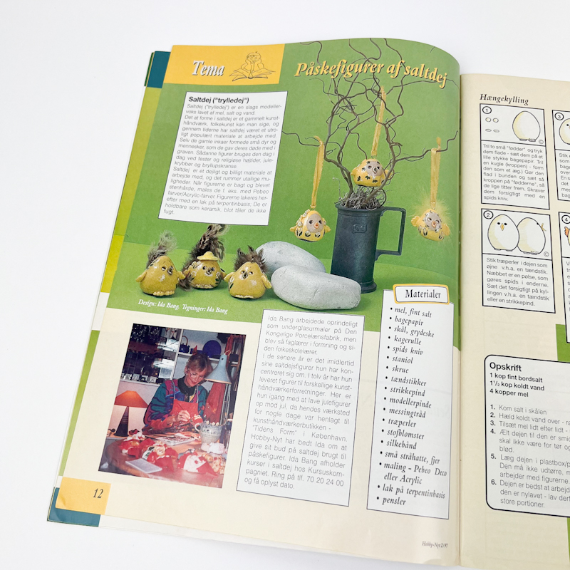 Bladet indeholder mange projekter med mønstre, vejledninger og skabeloner, bl.a. påskepynt og figurer i saltdej.