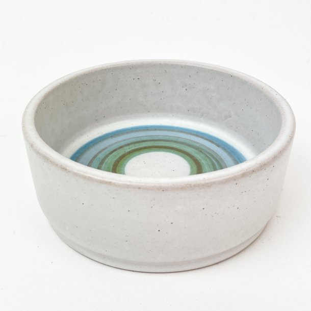 Unik bordskål, hvid keramik med turkis dekoration fra tyske Strehla