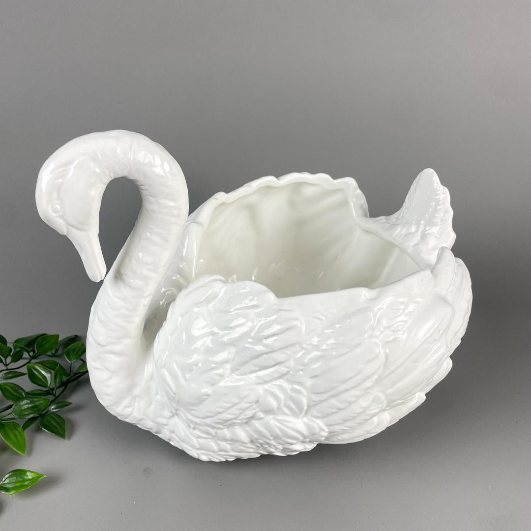 Smuk hvid retro porcelænssvane med fint modellerede fjer og elegant form.