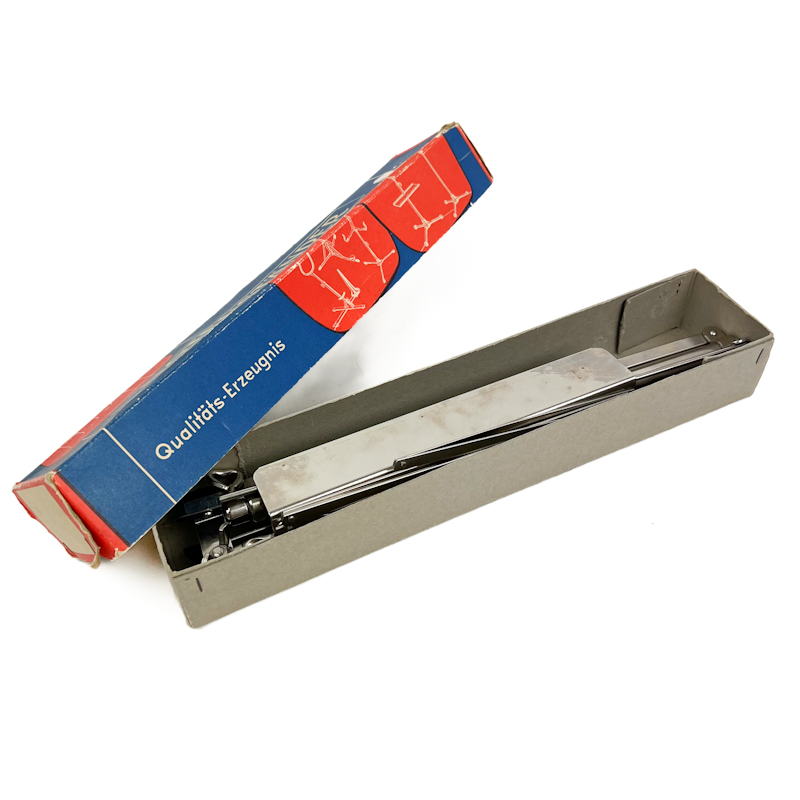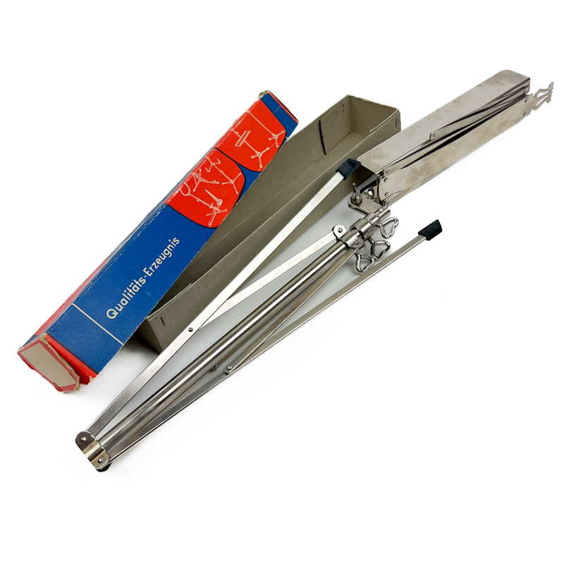 Praktisk retro nodestativ i forkromet metal med sammenfoldelig konstruktion.