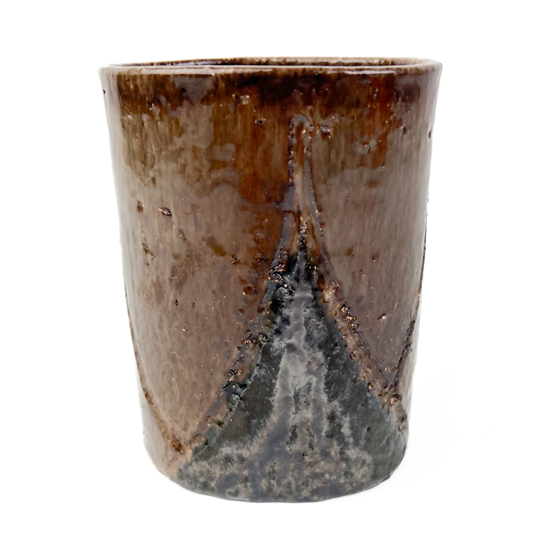 Fin vintage vase i stentøj med karakteristisk glasur i brune og mørke nuancer.