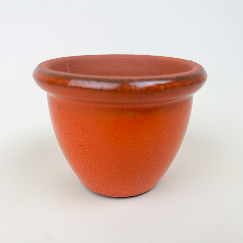 Den har en klassisk, let konisk form med markant afrundet kant og fin, jævn overflade.