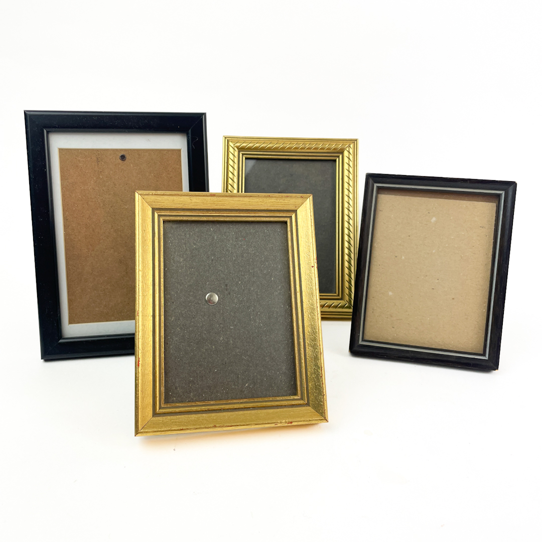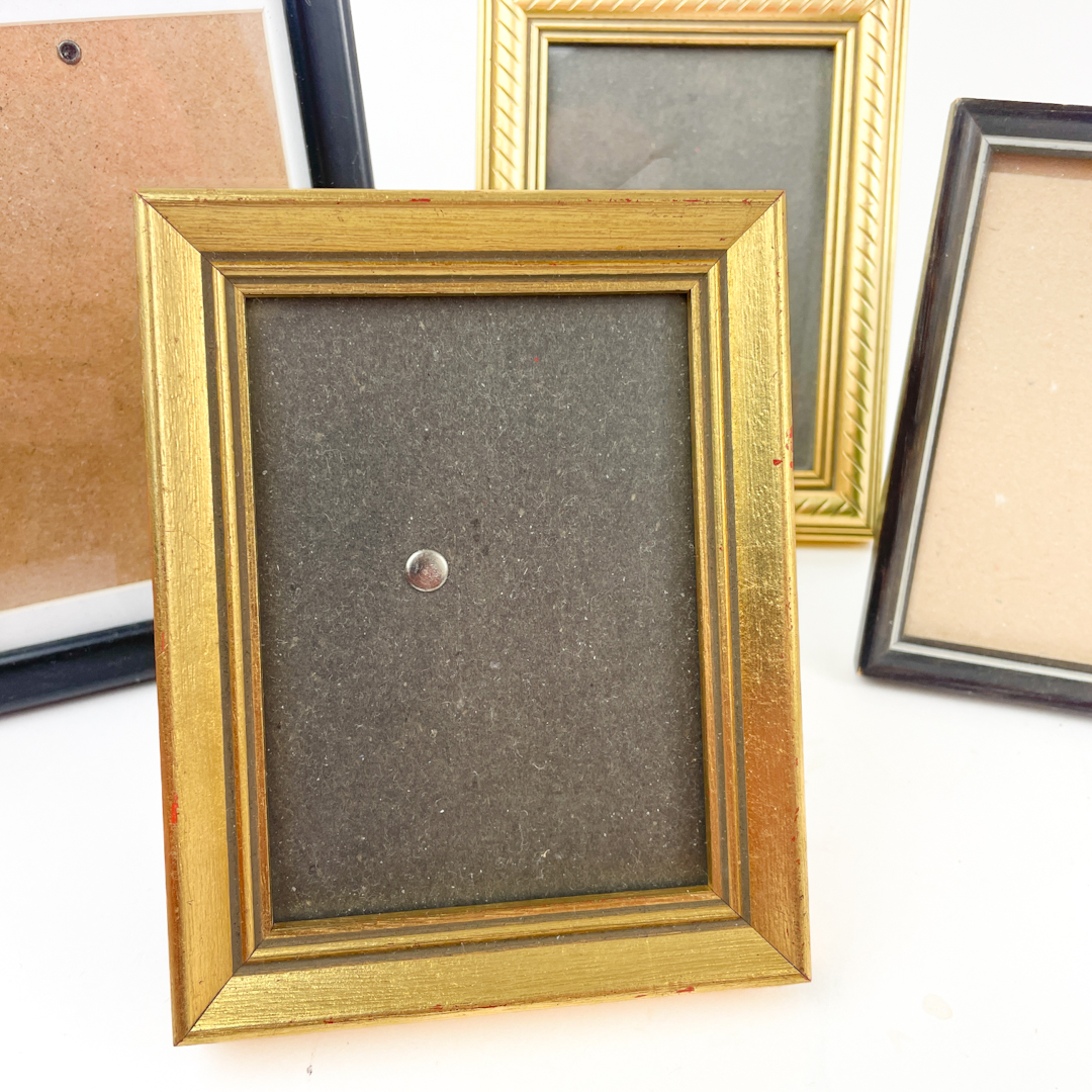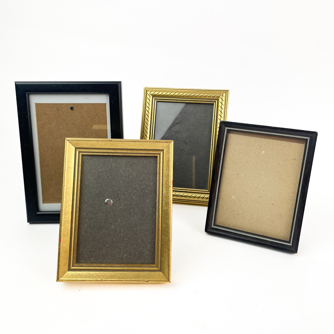 Sæt med fire fine gamle fotorammer i forskellige størrelser og udformninger.
