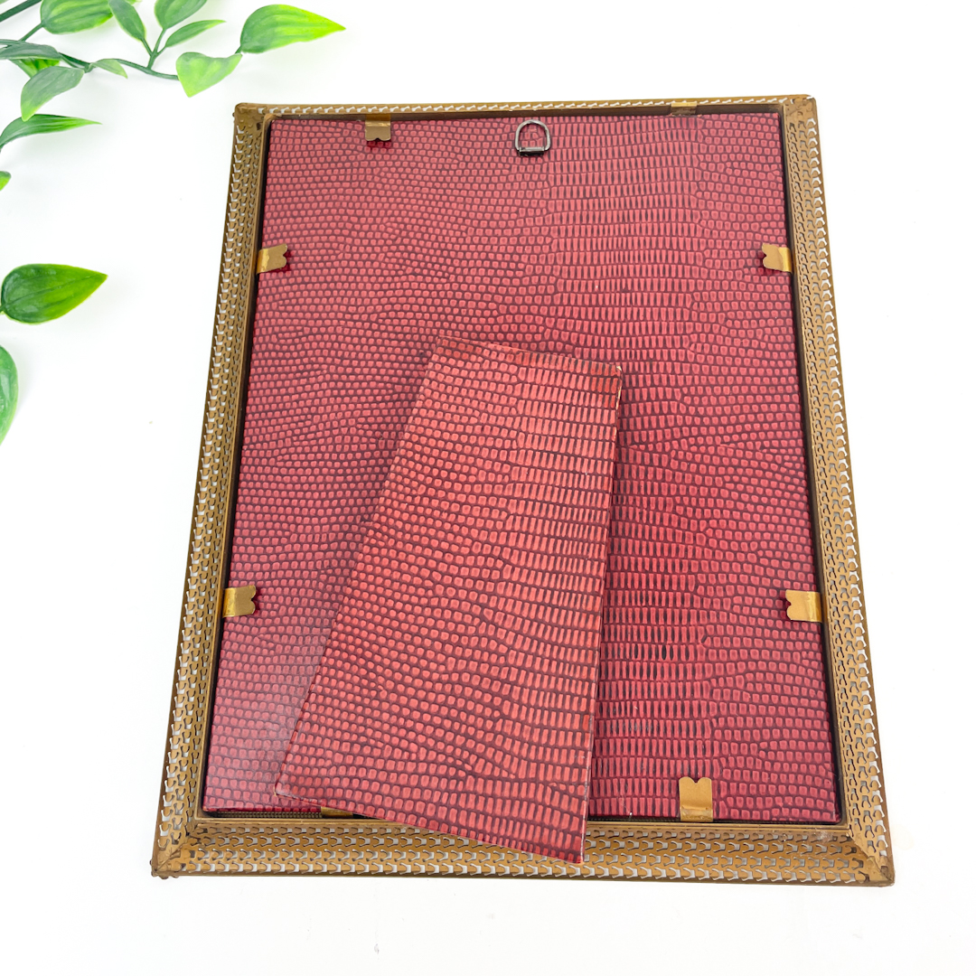 Rammen har originalt glas og bagbeklædning med stander, så den både kan hænge og stå.