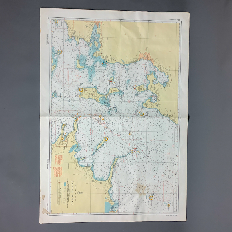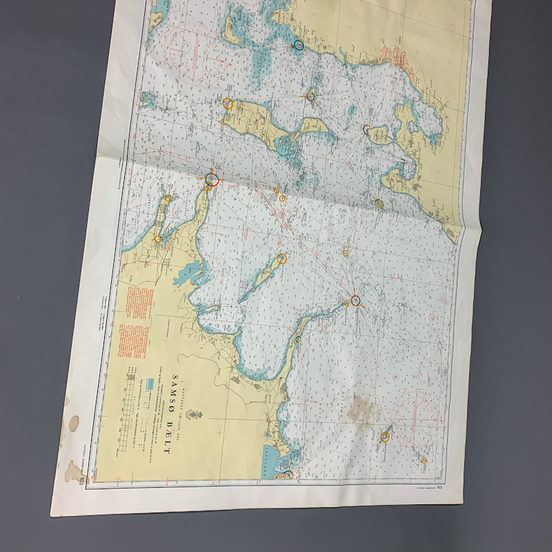 Søkortet er trykt på papir og stammer fra midten af det 20. århundrede.