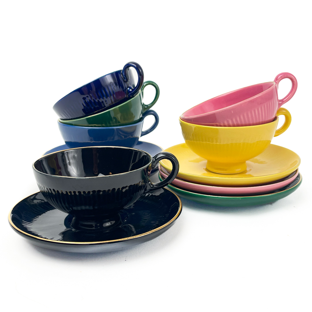 Smukt sæt med seks mokkakopper med tilhørende underkopper fra Kronjyden.