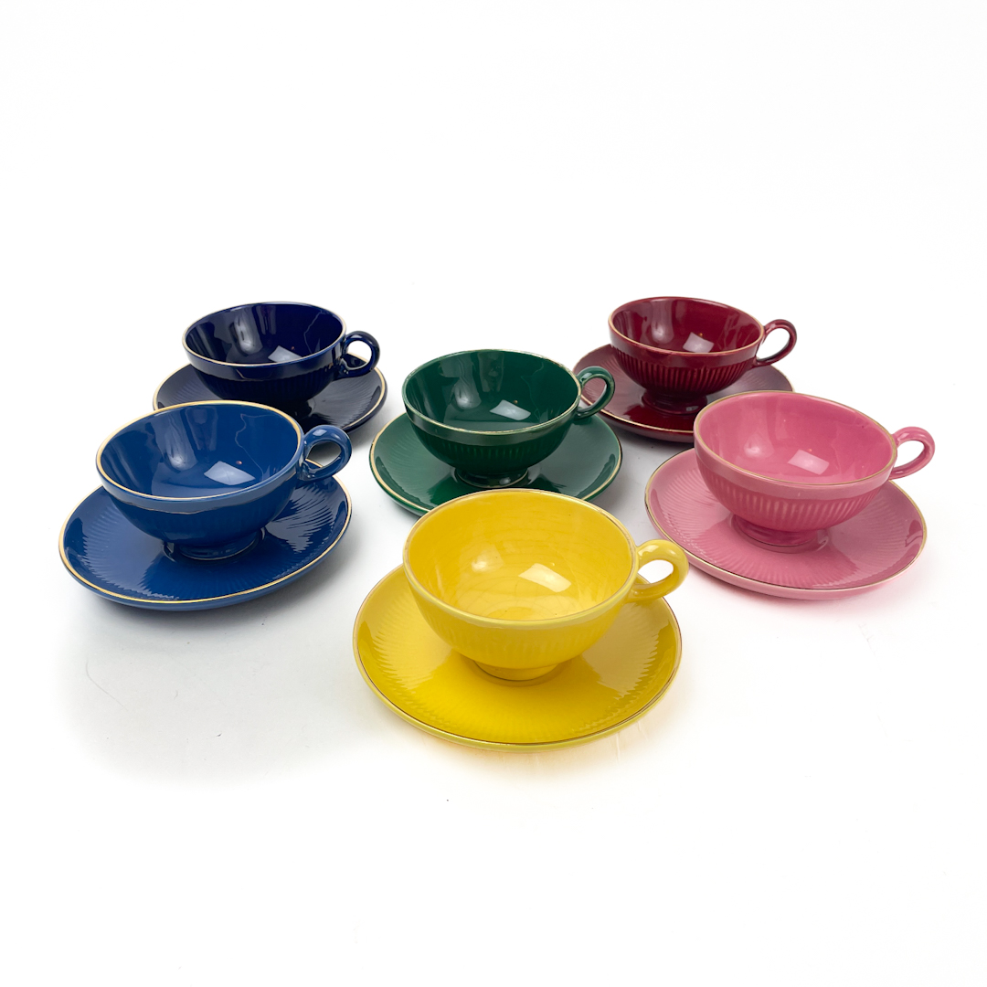 Sættet er komplet med tolv dele – seks kopper og seks underkopper, der passer perfekt sammen.