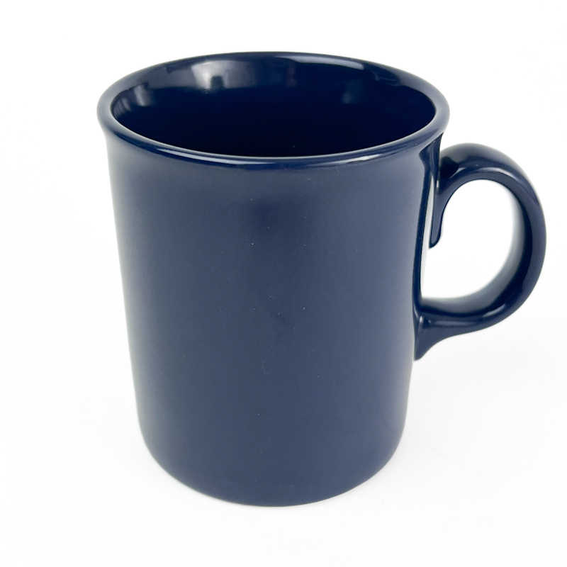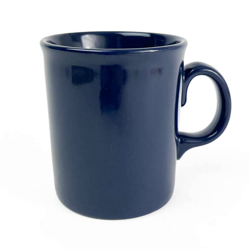 Smukt engelsk retro krus i dyb blå glasur med klassisk, enkel form.