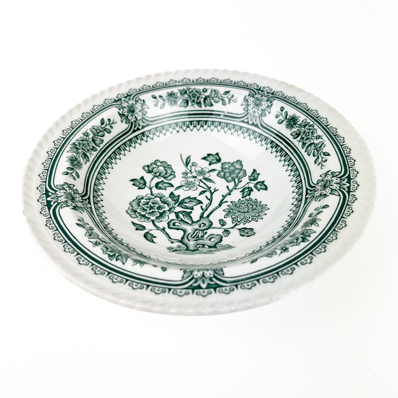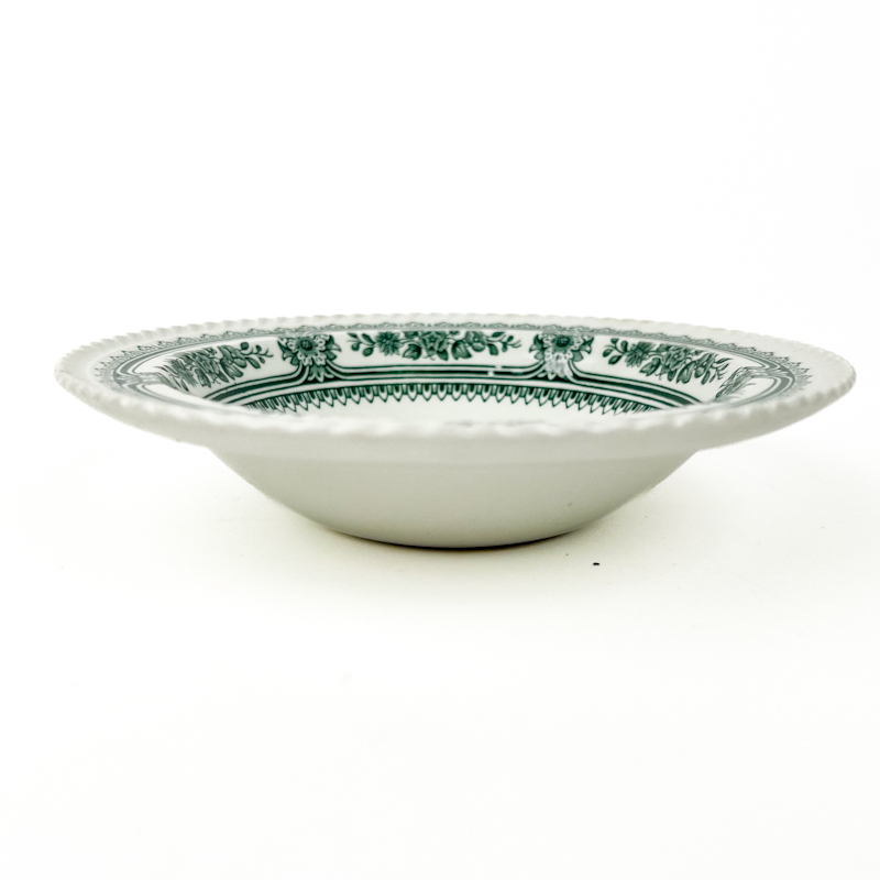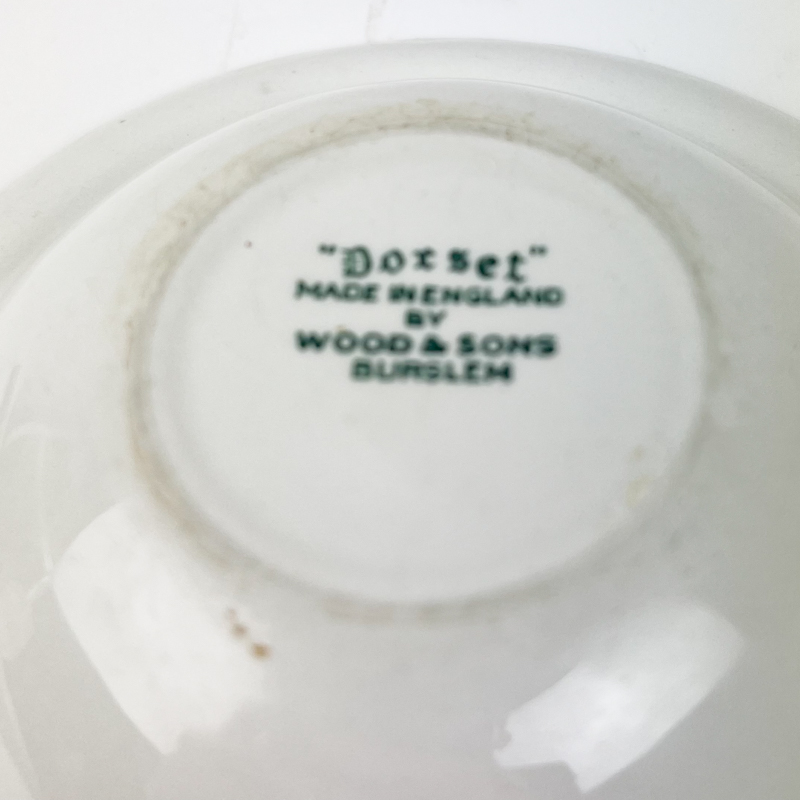 Fin vintage grødskål, Dorset fra Wood & Sons Burslem i hvidt porcelæn med klassisk grøn blomsterdekoration.
