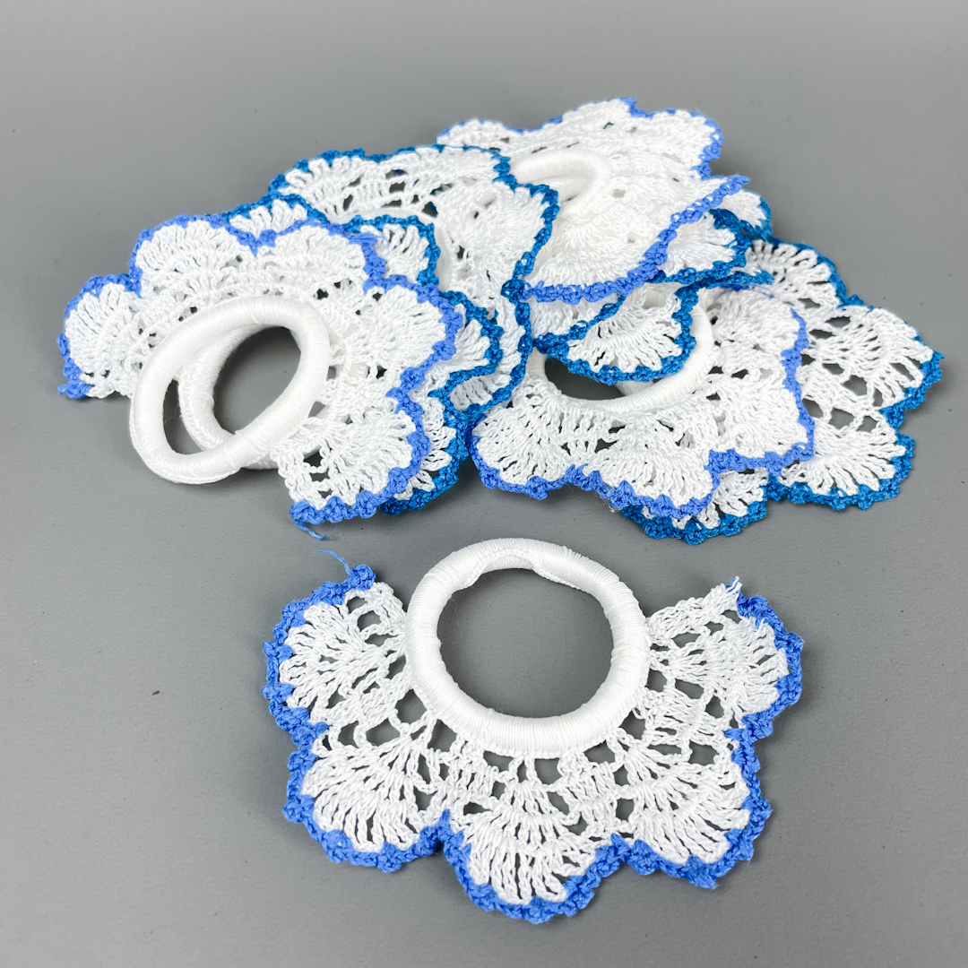 Smukke vintage servietringe med hæklet mønster i vifteform.