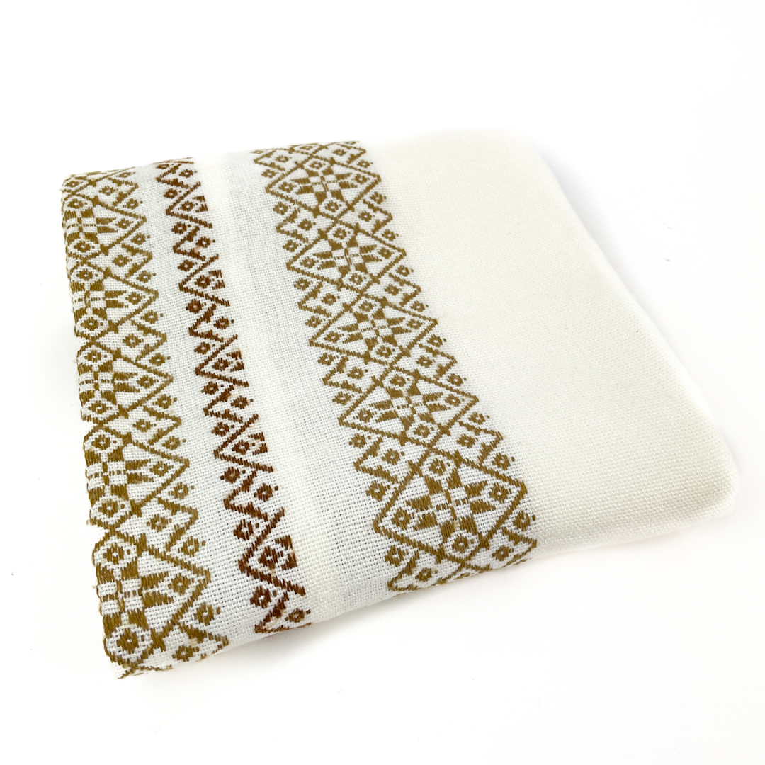 Smuk hvid retro dug i ren bomuld med klassisk vævet bort i brune nuancer.