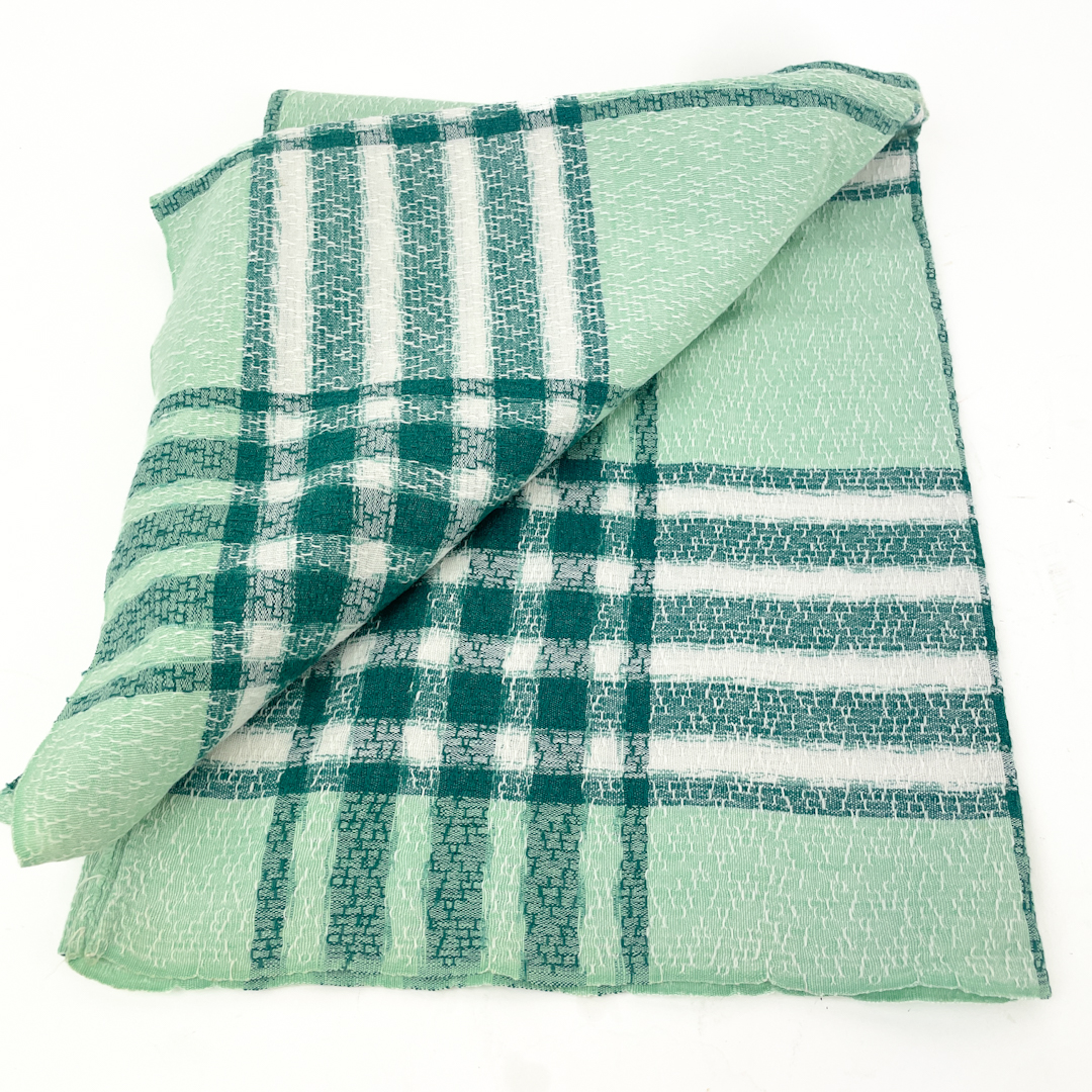 Smuk mintgrøn retro dug med klassisk ternet mønster i mørkegrøn og hvid.