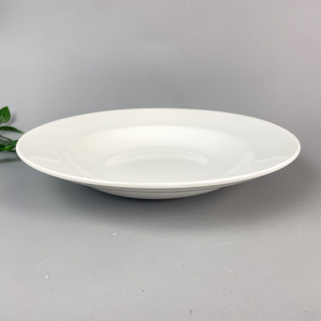 Smuk og klassisk dyb tallerken i hvidt porcelæn.