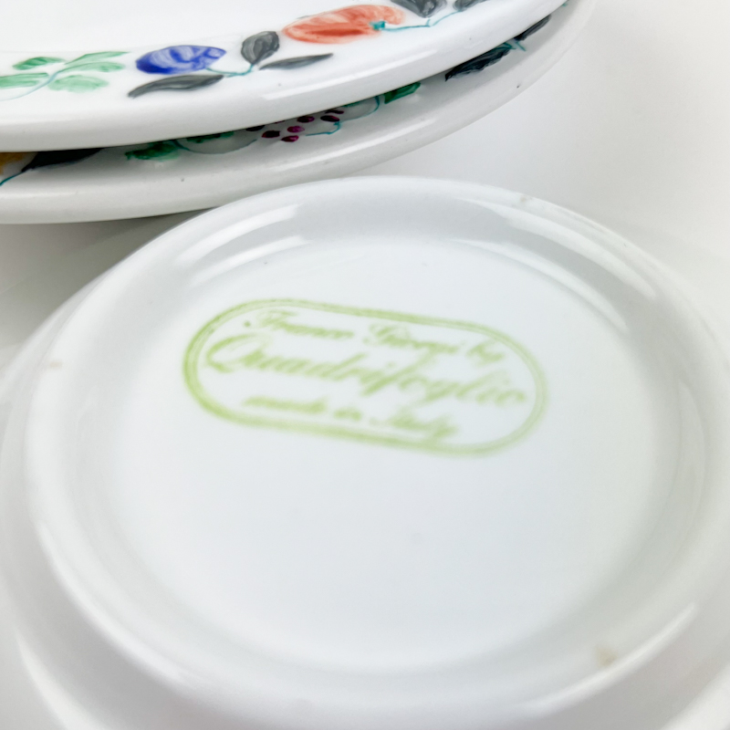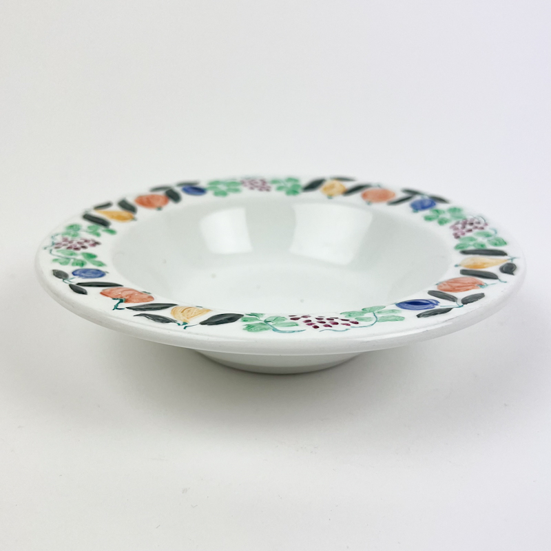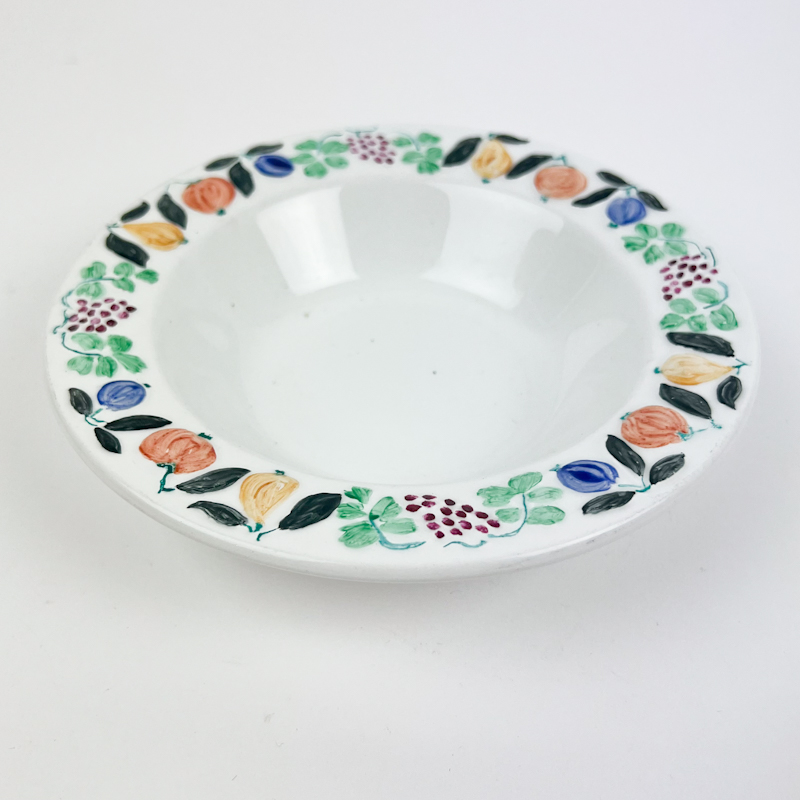Fin vintage ymerskål fra Candle Light med håndmalet frugt- og blomstermønster i klare farver.