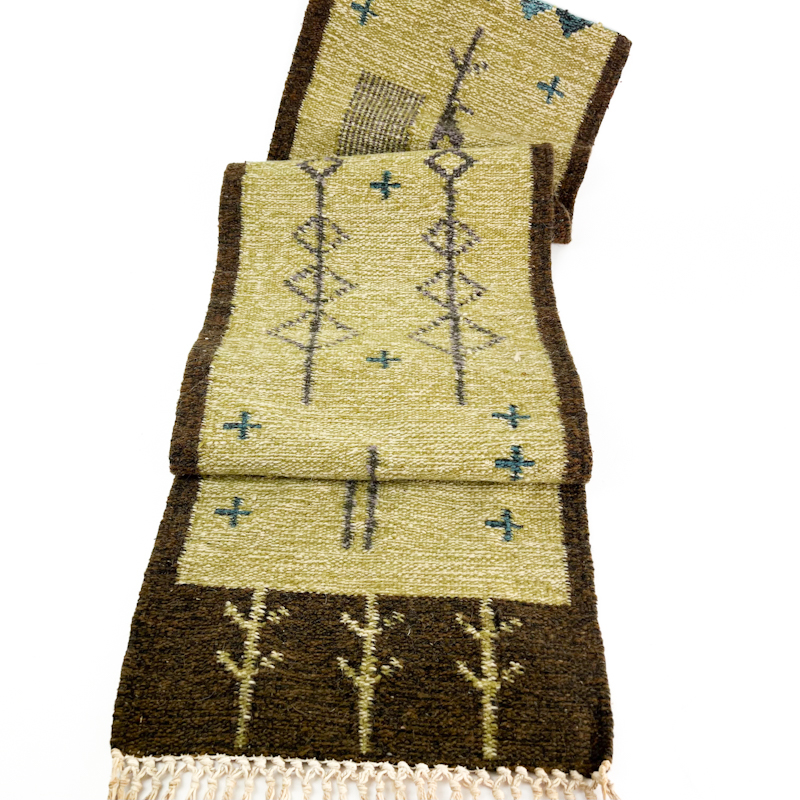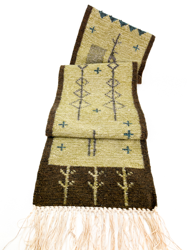 Det grafiske mønster med stiliserede træer og små korsdetaljer giver et markant og ægte vintage udtryk.